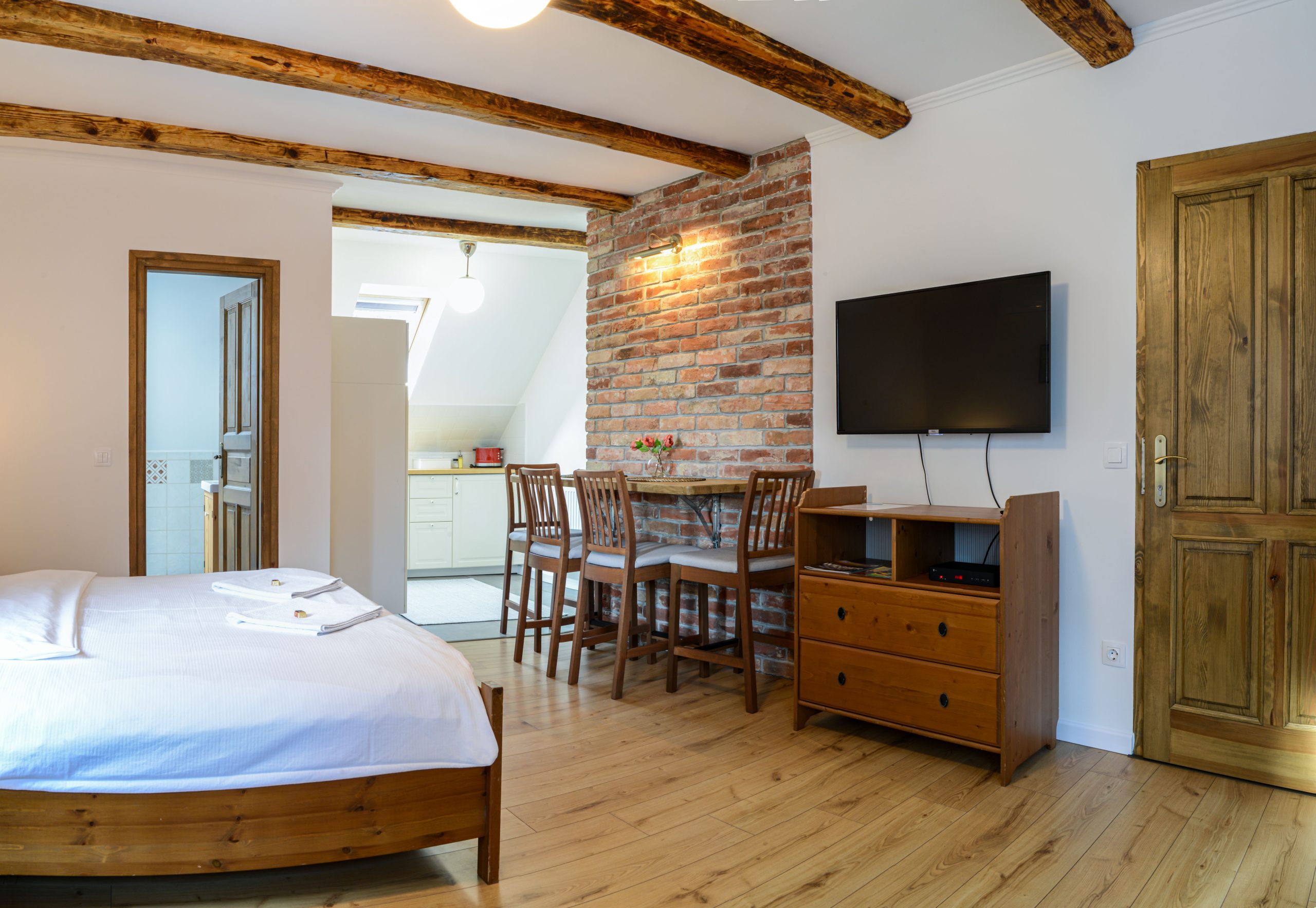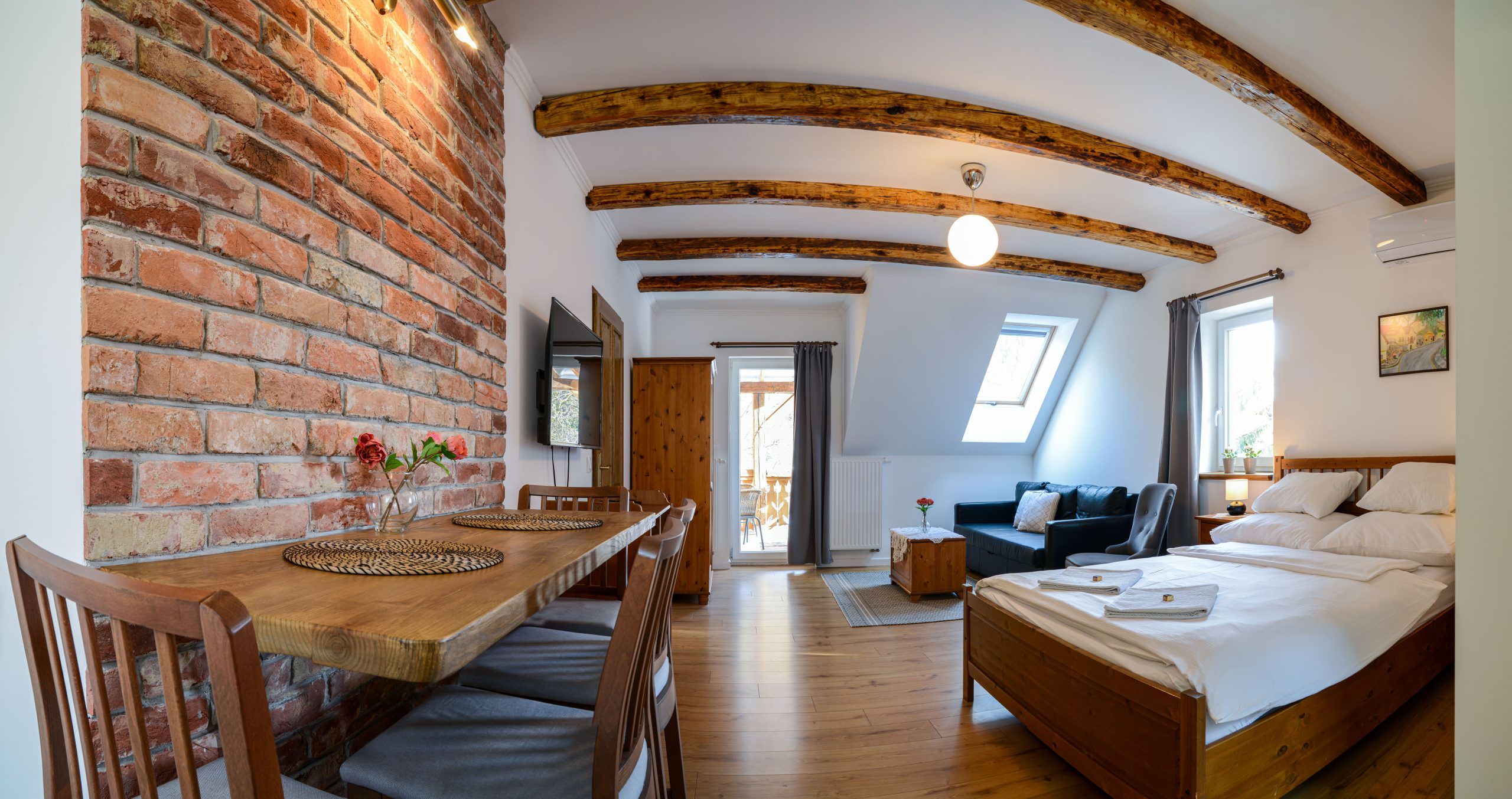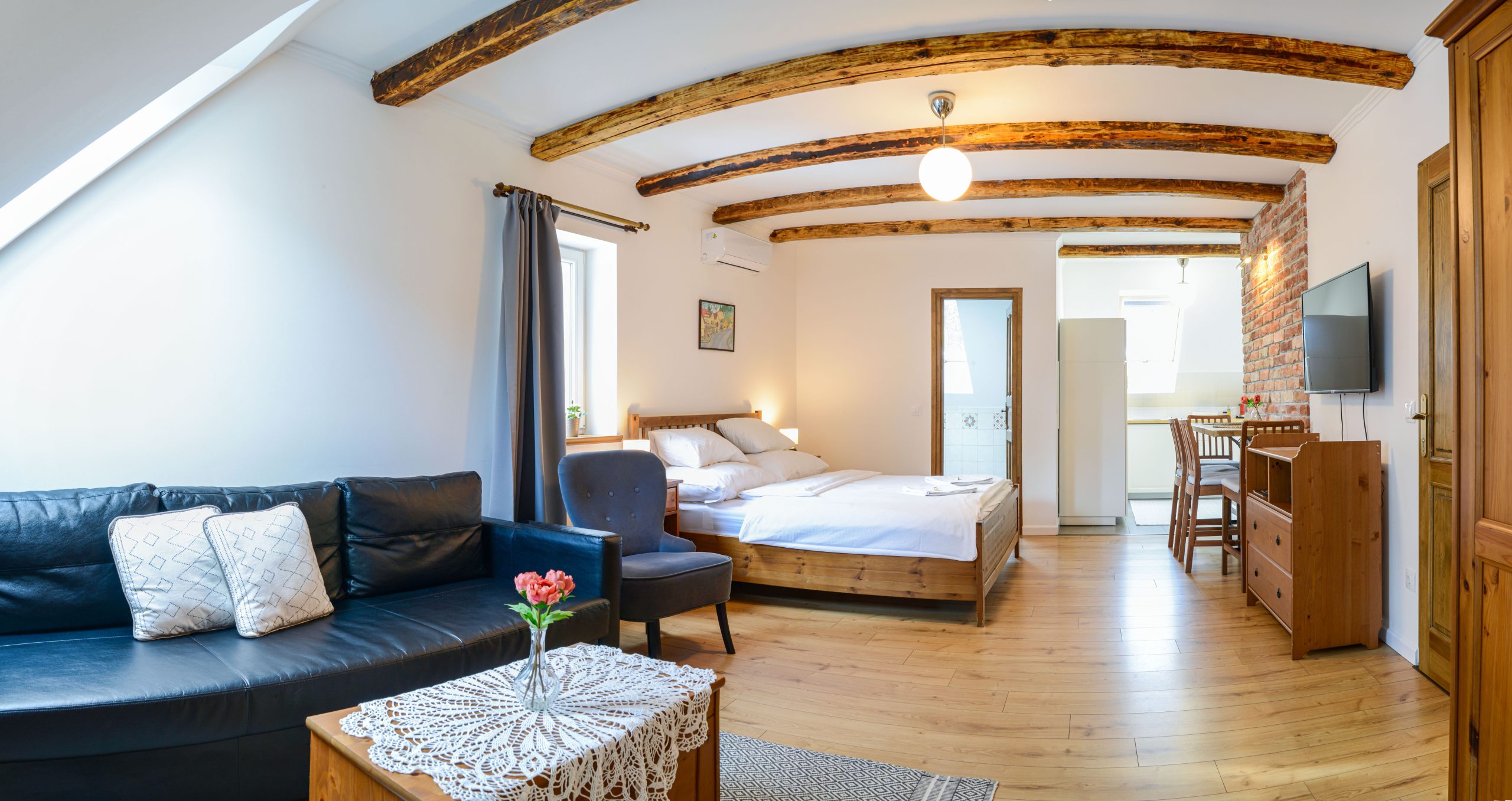 A klasszikus kivitelezése annak ahogyan mi elképzeljük a Terrace Apartmant. Egy tágas, kényelmes apartman pihenésre, természet közeli feltöltődésre. Zuhanyzós fürdőszoba és minden igényt kielégítően felszerelt nagy méretű konyha áll a vendégek rendelkezésére.