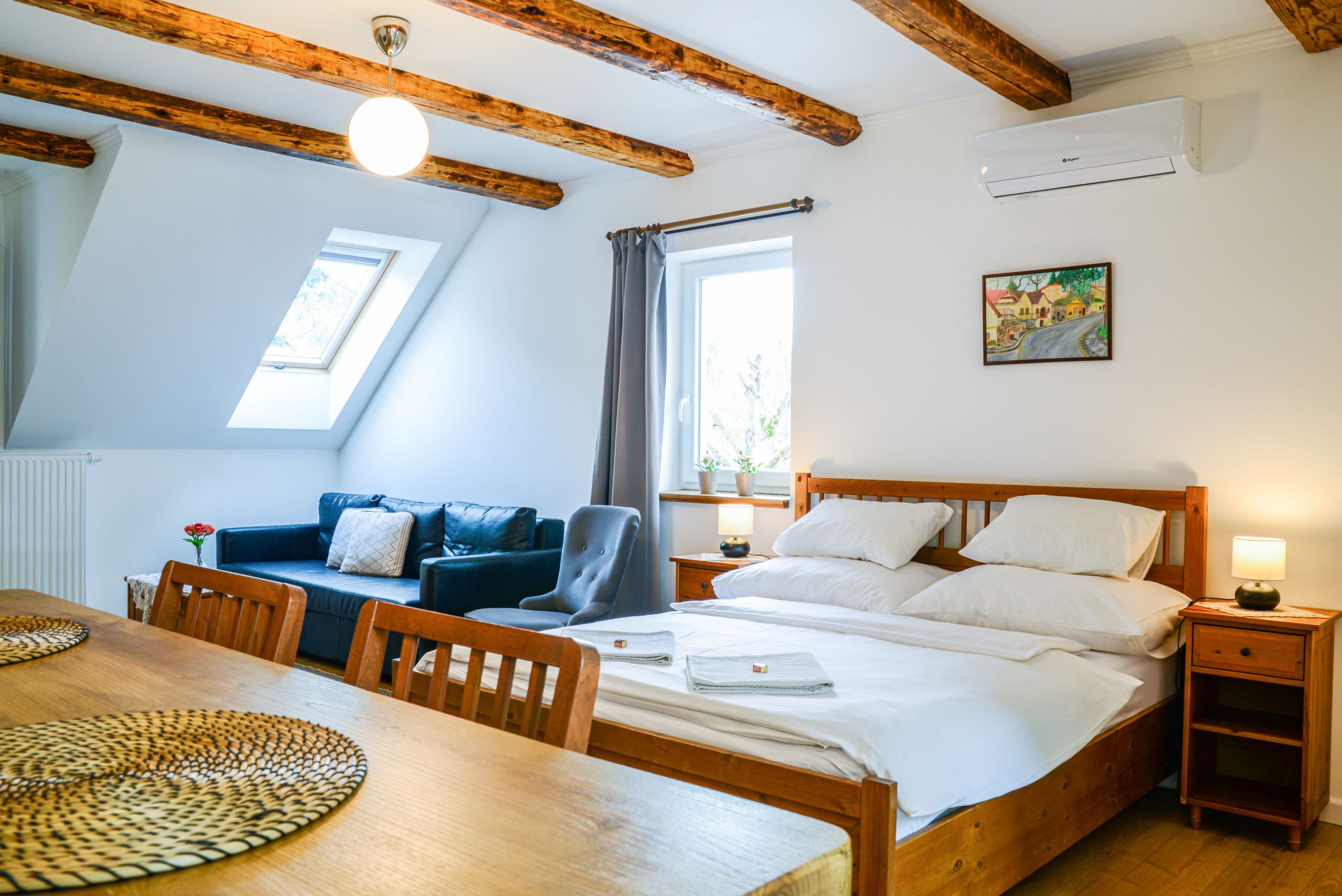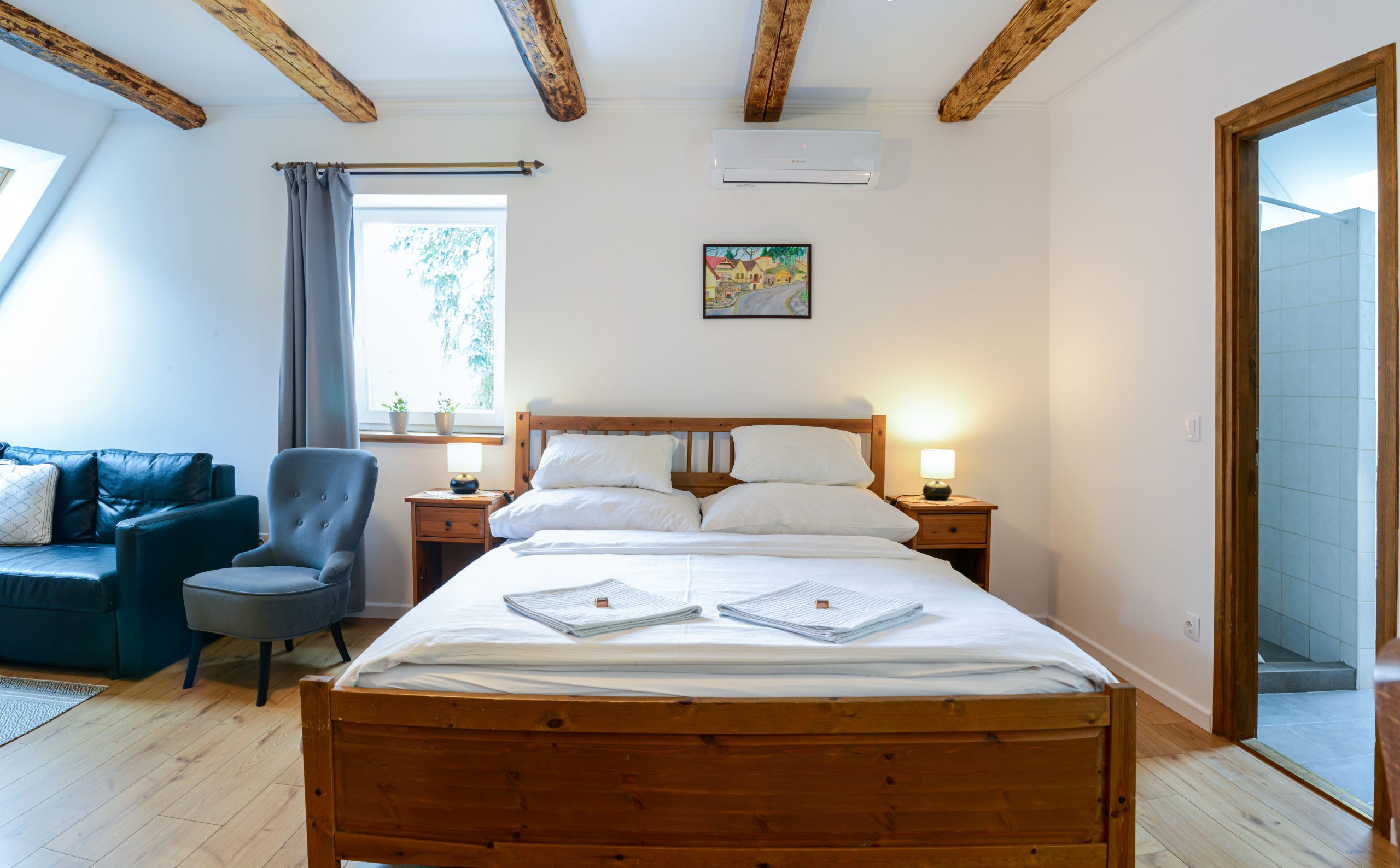 Apartmanunkban négy fő részére tudunk helyet biztosítani. Egy 160×200-as kényelmi matracos franciaágy és egy 150×200-as méretűre kinyitható kanapéágy áll rendelkezésre.